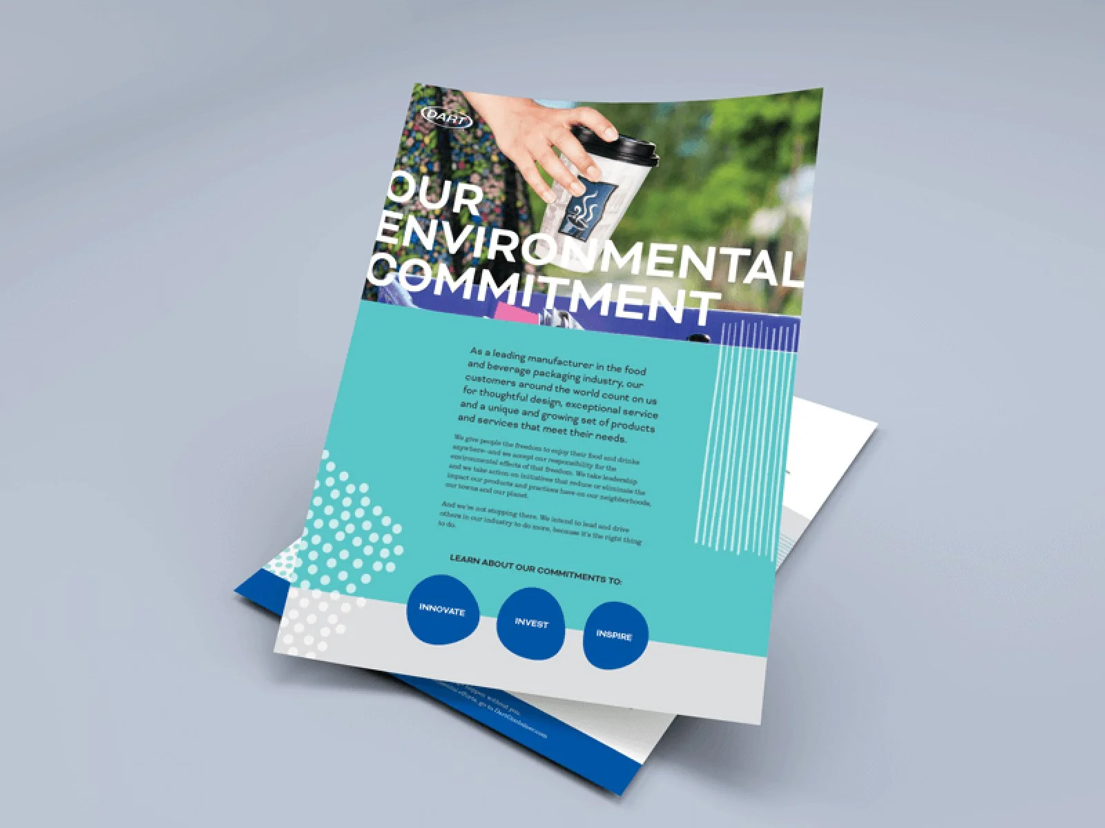 Different print materials to show the ways Dart was combating single use products and how their items could live another life